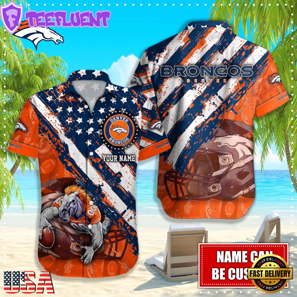 NFL Denver Broncos Football American Flag Mascot Custom Name Summer Hawaiian Shirt