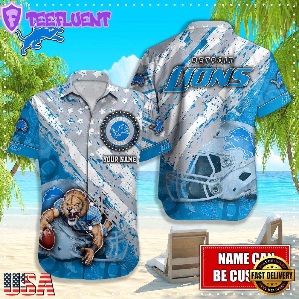 NFL Detroit Lions Football American Flag Mascot Custom Name Summer Hawaiian Shirt