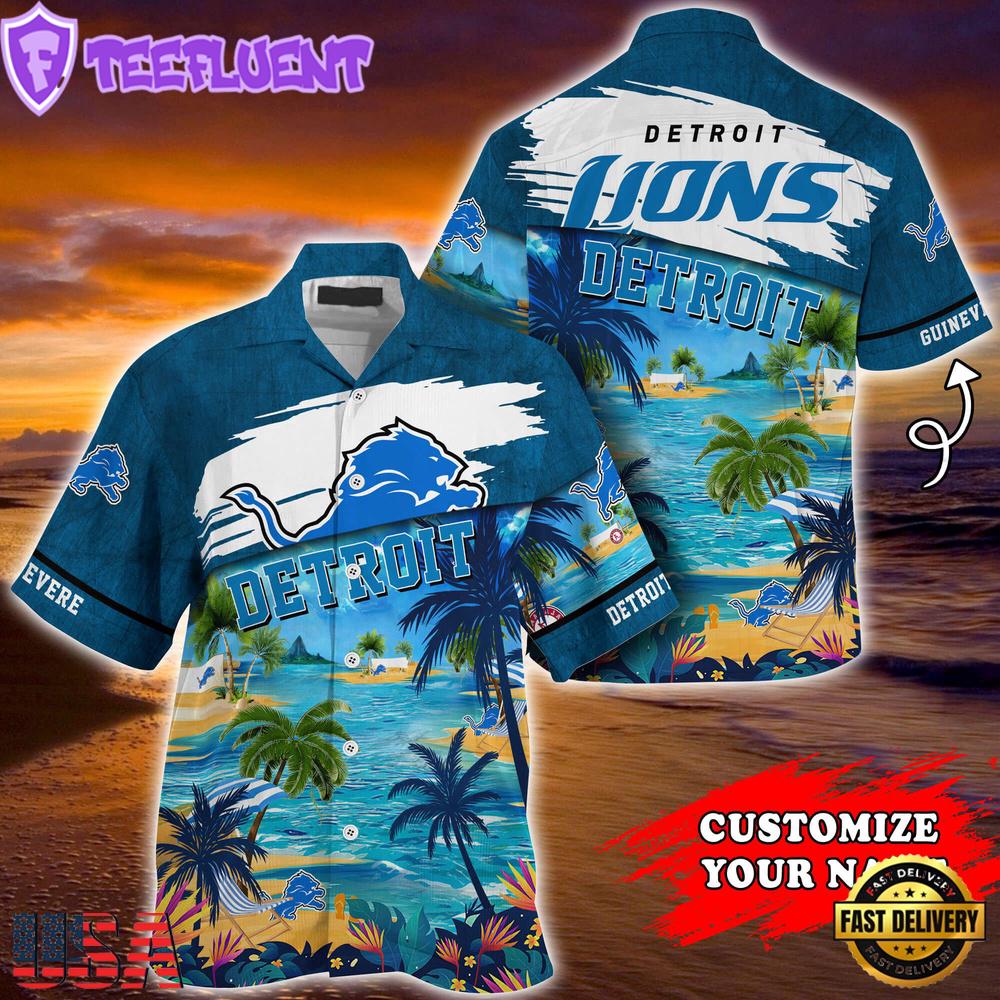 NFL Detroit Lions Hawaii Beach Custom Name Summer Hawaiian Shirt