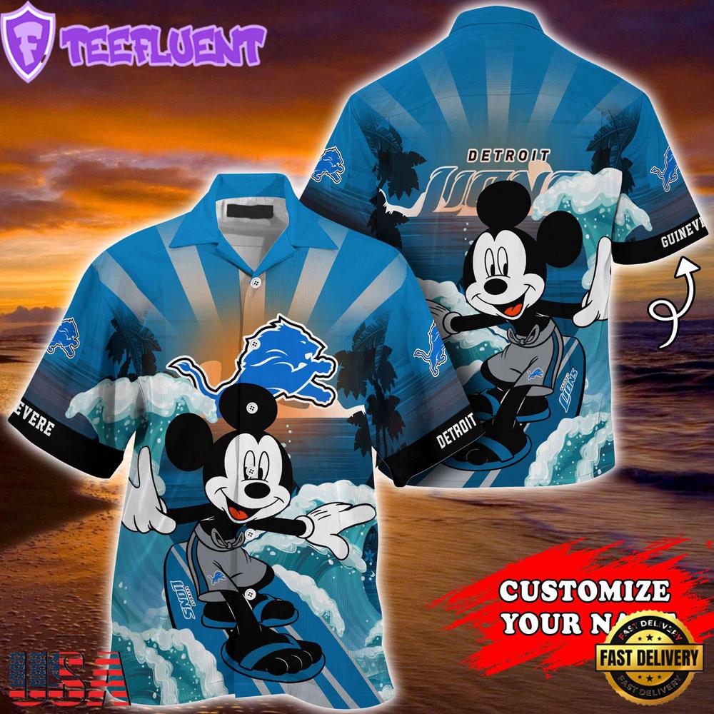 Photos Of NFL Detroit Lions Mickey Mouse Surfing Custom Name Summer Hawaiian Shirt