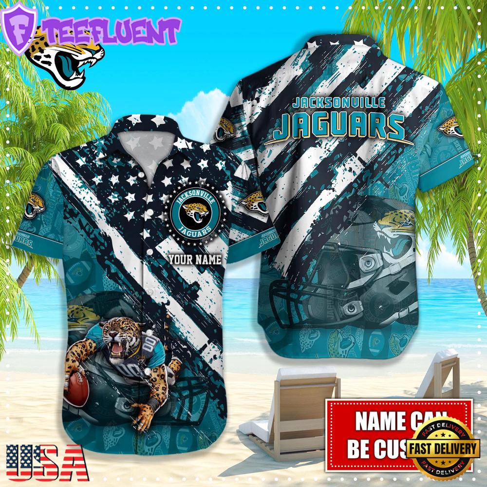 NFL Jacksonville Jaguars Football American Flag Mascot Custom Name Summer Hawaiian Shirt