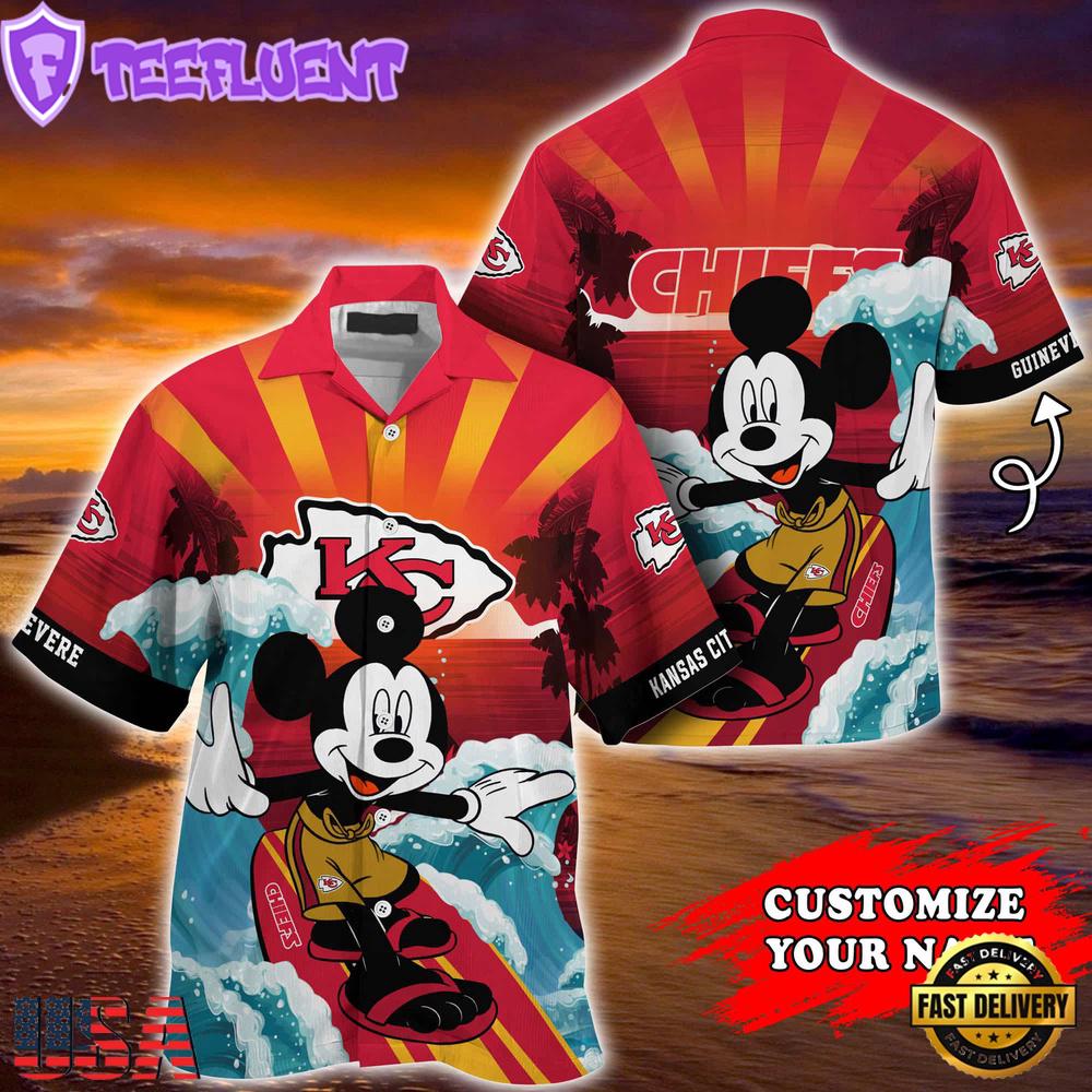 Photos Of NFL Kansas City Chiefs Mickey Mouse Surfing Custom Name Summer Hawaiian Shirt