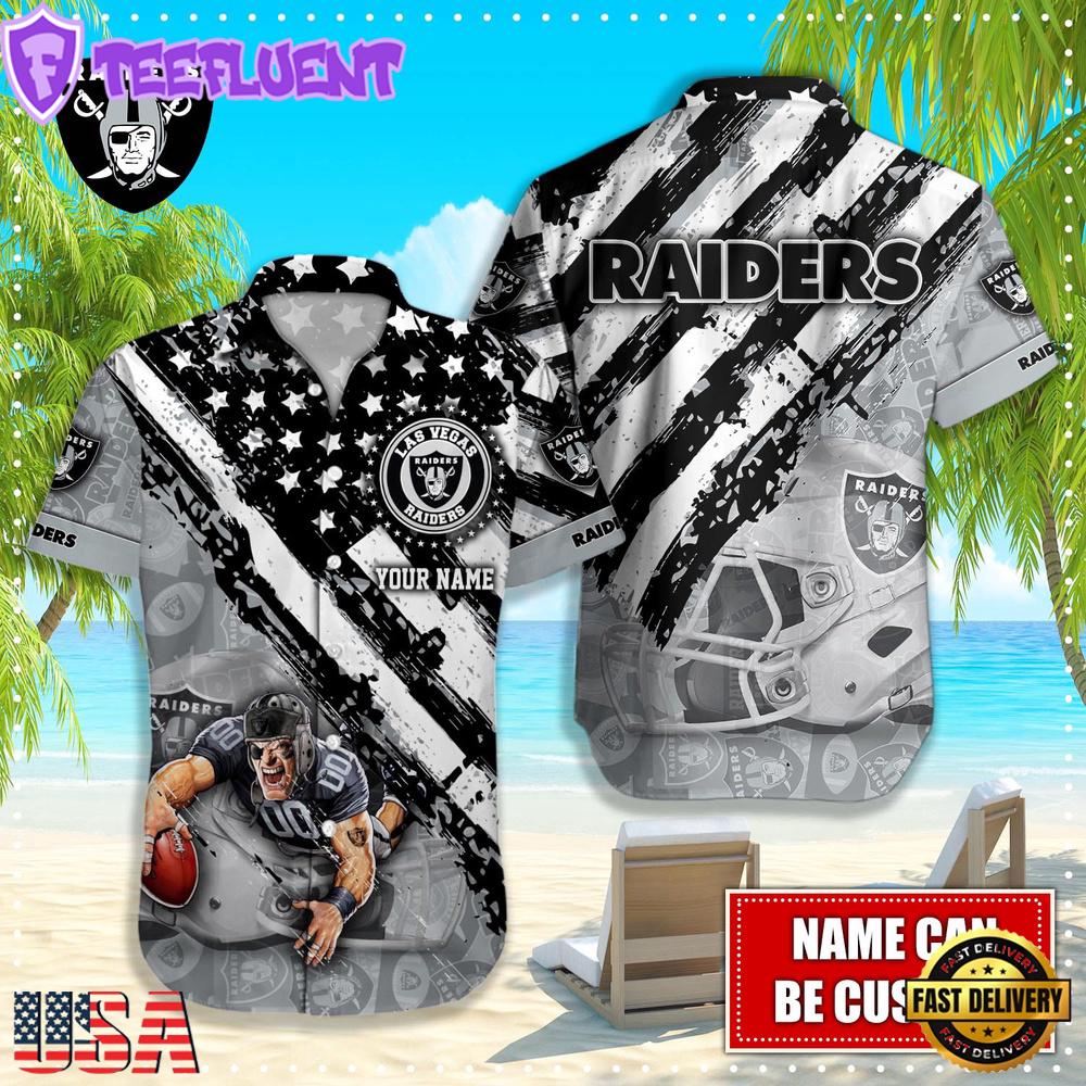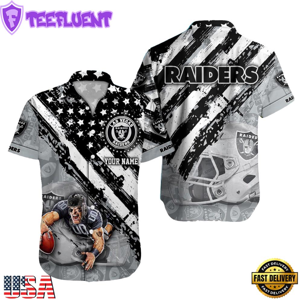 NFL Las Vegas Raiders Football American Flag Mascot Custom Name Summer Hawaiian Shirt