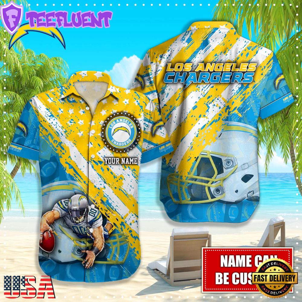 NFL Los Angeles Chargers Football American Flag Mascot Custom Name Summer Hawaiian Shirt