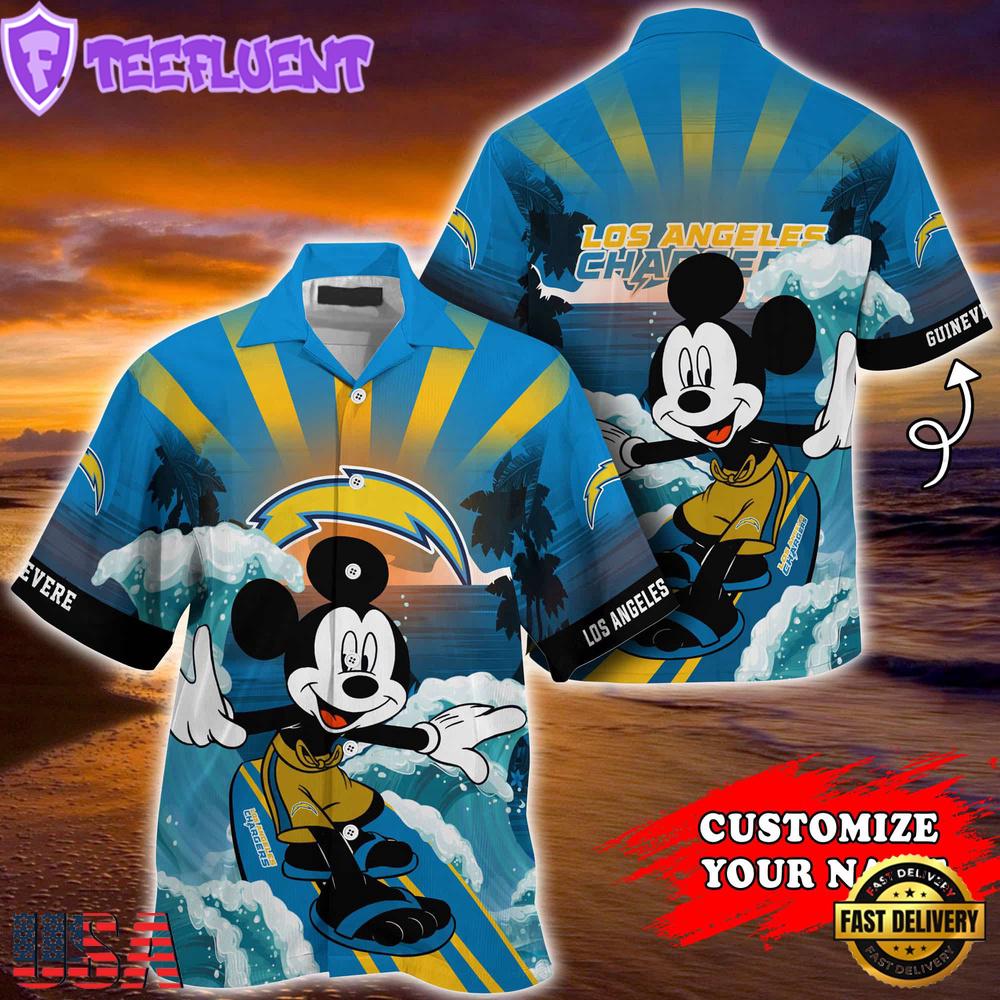Photos Of NFL Los Angeles Chargers Mickey Mouse Surfing Custom Name Summer Hawaiian Shirt
