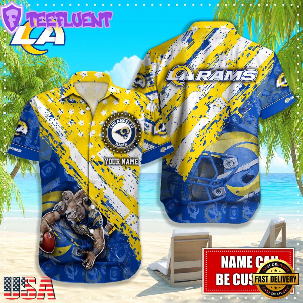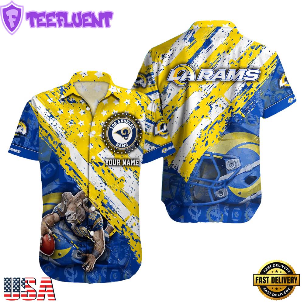 NFL Los Angeles Rams Football American Flag Mascot Custom Name Summer Hawaiian Shirt