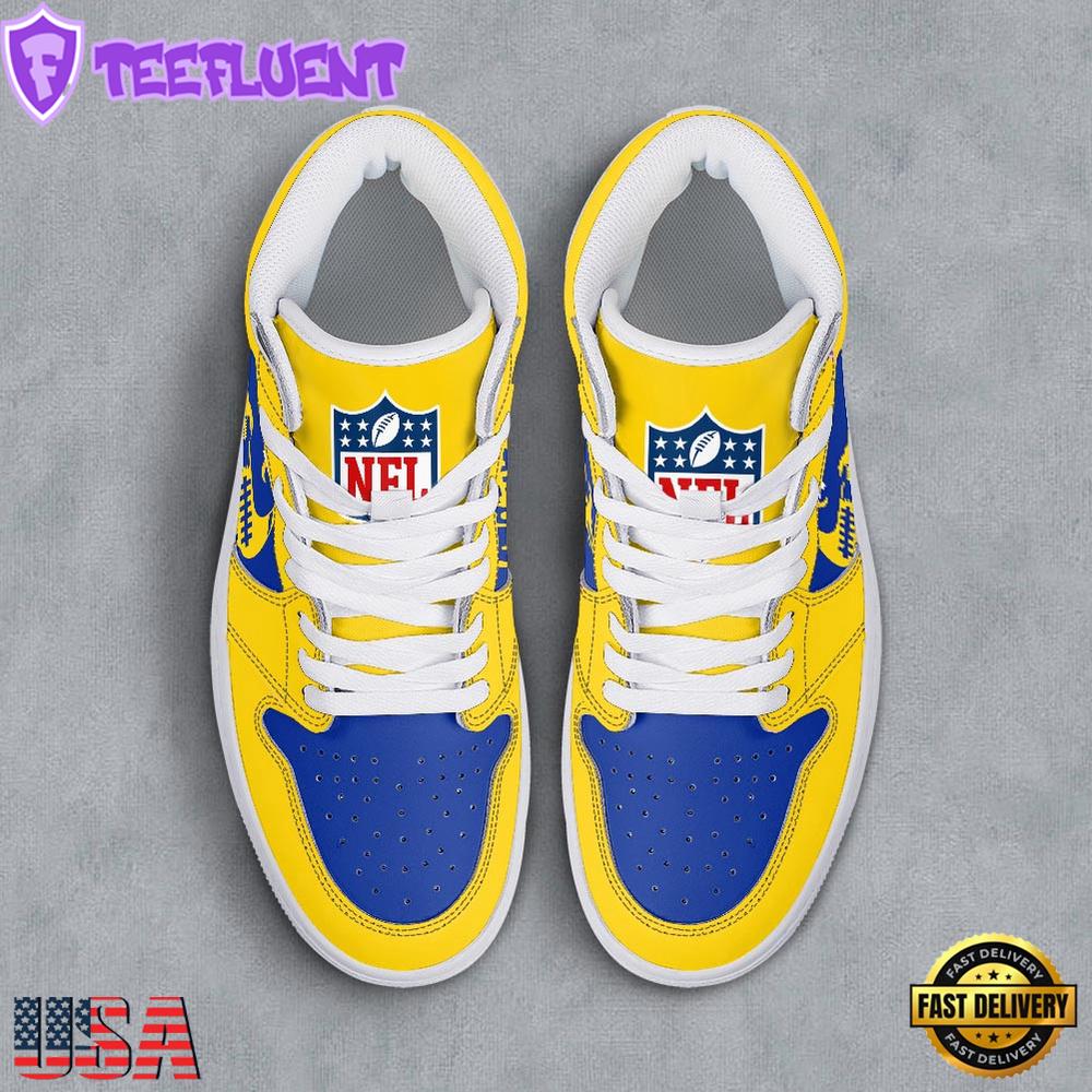 Photos Of NFL Los Angeles Rams Grunge Style Custom Air Jordan 1 Shoes