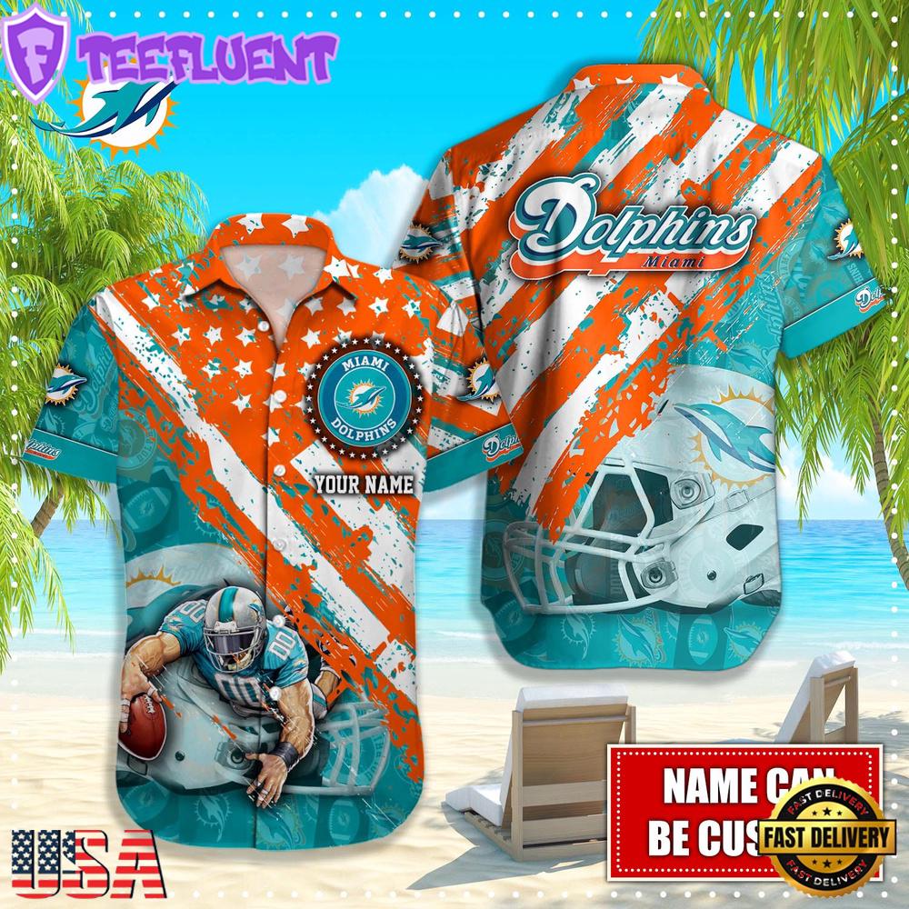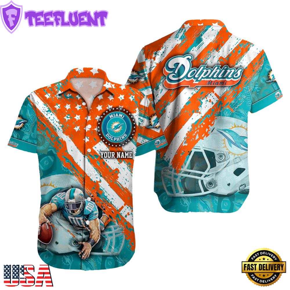 NFL Miami Dolphins Football American Flag Mascot Custom Name Summer Hawaiian Shirt