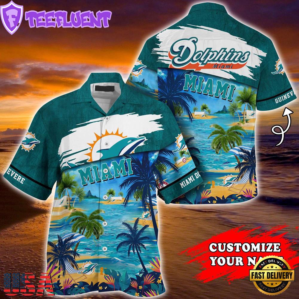 NFL Miami Dolphins Hawaii Beach Custom Name Summer Hawaiian Shirt