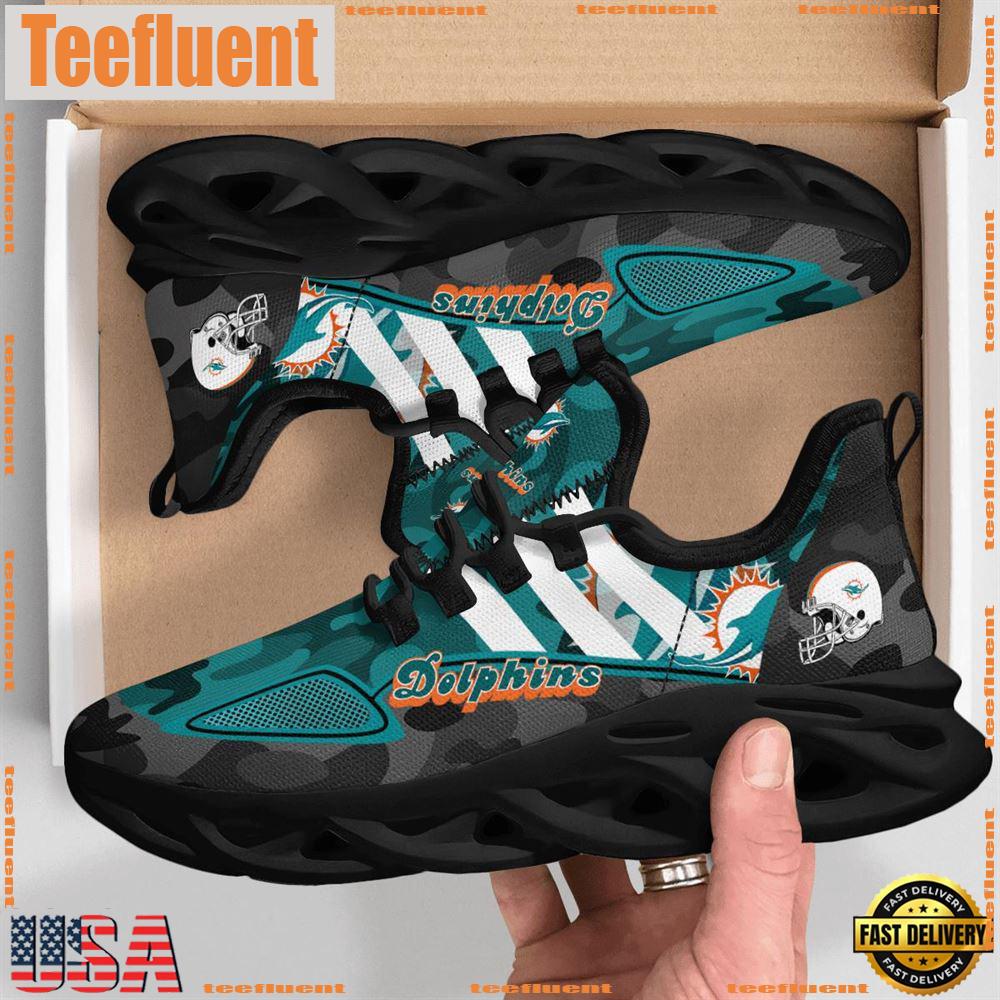 NFL Miami Dolphins Military Camouflage New Design Max Soul Shoes For Men, Women Running Sneakers For Mens Womens