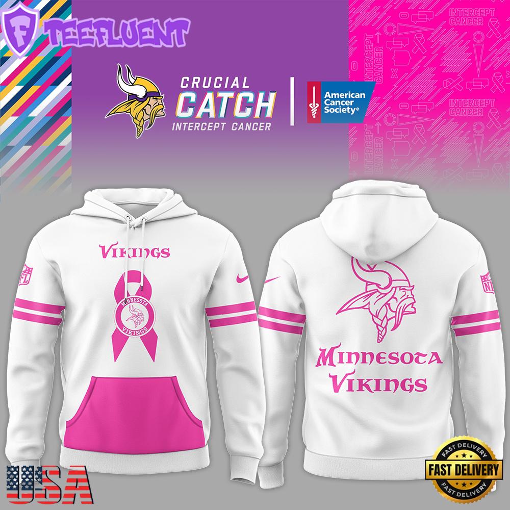 Photos Of NFL Minnesota Vikings Crucal Catch Intercept Cancer Pink Hoodie