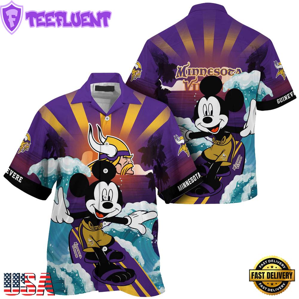 Photos Of NFL Minnesota Vikings Mickey Mouse Surfing Custom Name Summer Hawaiian Shirt