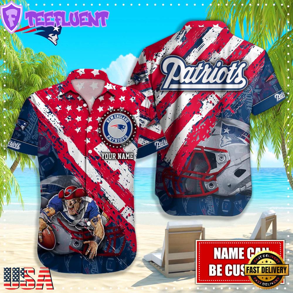 NFL New England Patriots Football American Flag Mascot Custom Name Summer Hawaiian Shirt