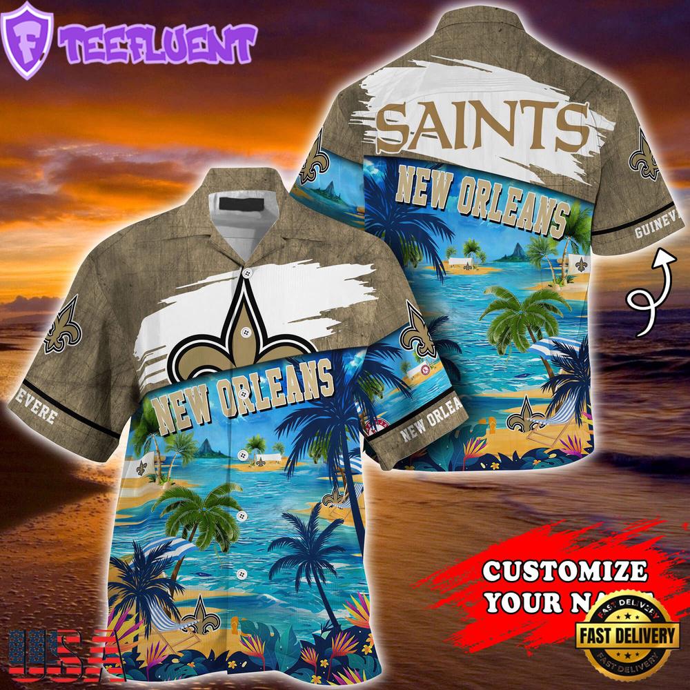 NFL New Orleans Saints Hawaii Beach Custom Name Summer Hawaiian Shirt