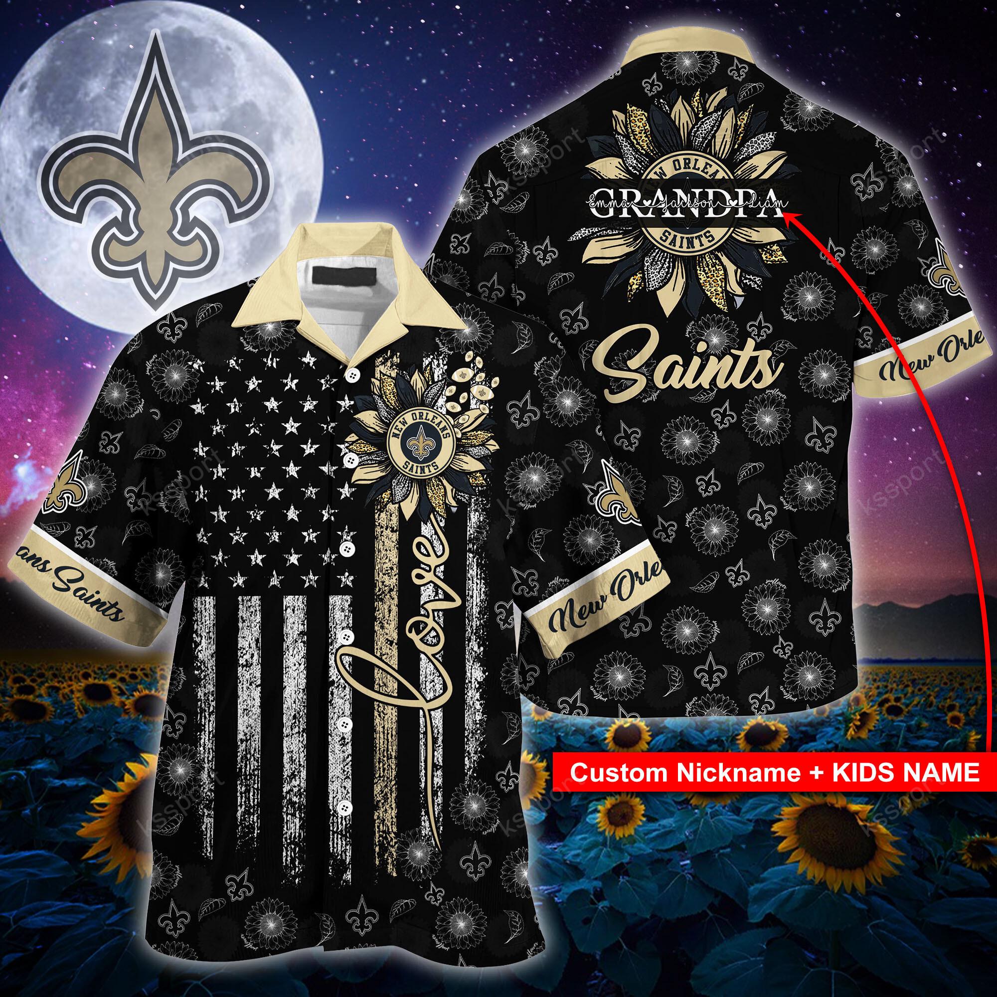 NFL New Orleans Saints Sunflower Custom Hawaiian Shirt, Mens Hawaiian Shirts