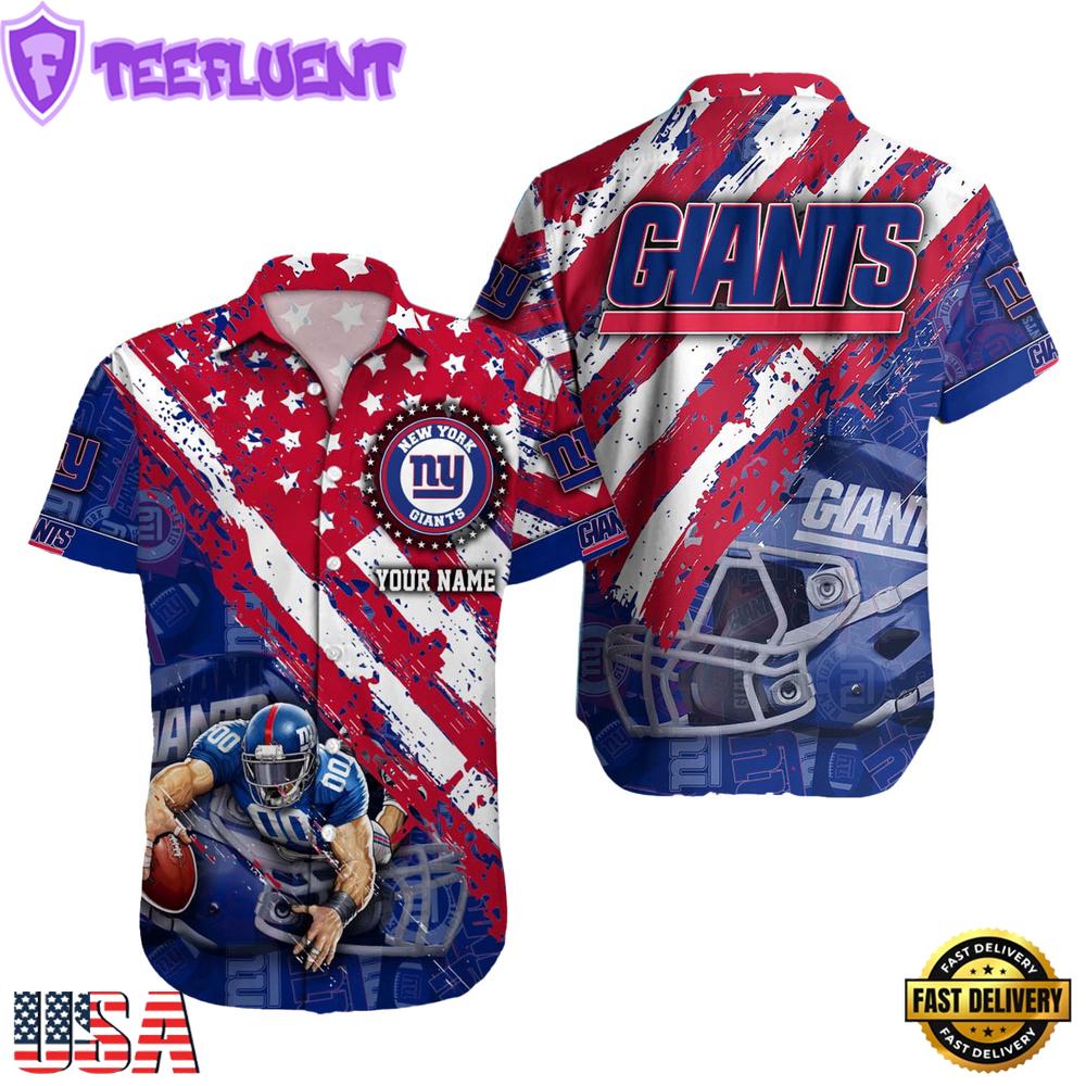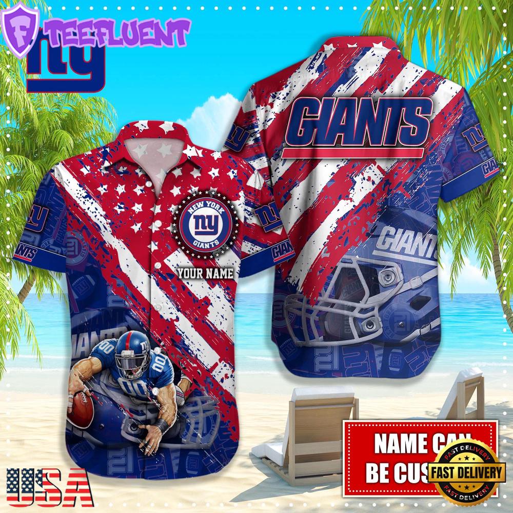 NFL New York Giants Football American Flag Mascot Custom Name Summer Hawaiian Shirt