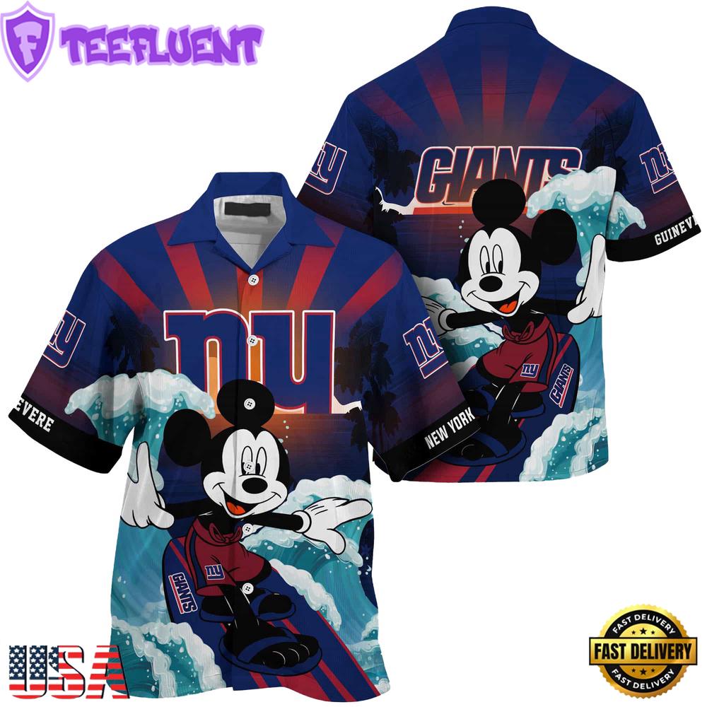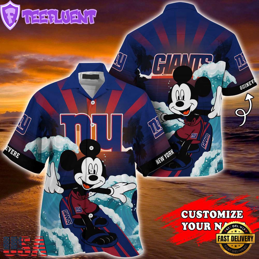 Photos Of NFL New York Giants Mickey Mouse Surfing Custom Name Summer Hawaiian Shirt