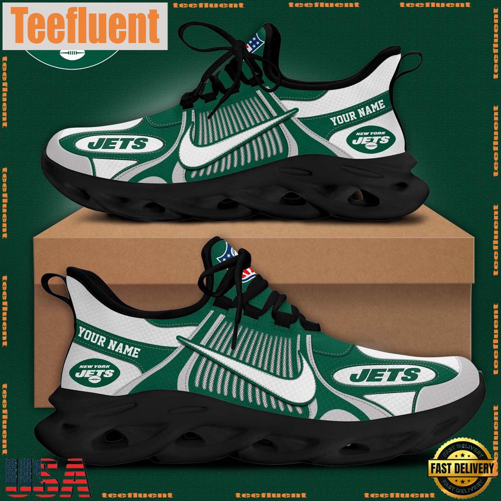 NFL New York Jets Blue White Stripes Logo Custom Clunky Max Soul Shoes – NFL Fan Gifts