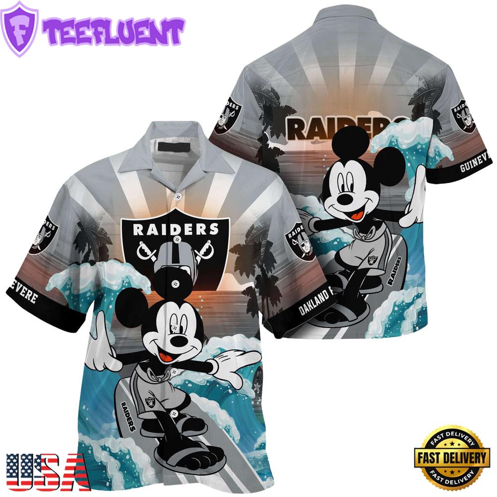 NFL Oakland Raiders Mickey Mouse Surfing Custom Name Summer Hawaiian Shirt