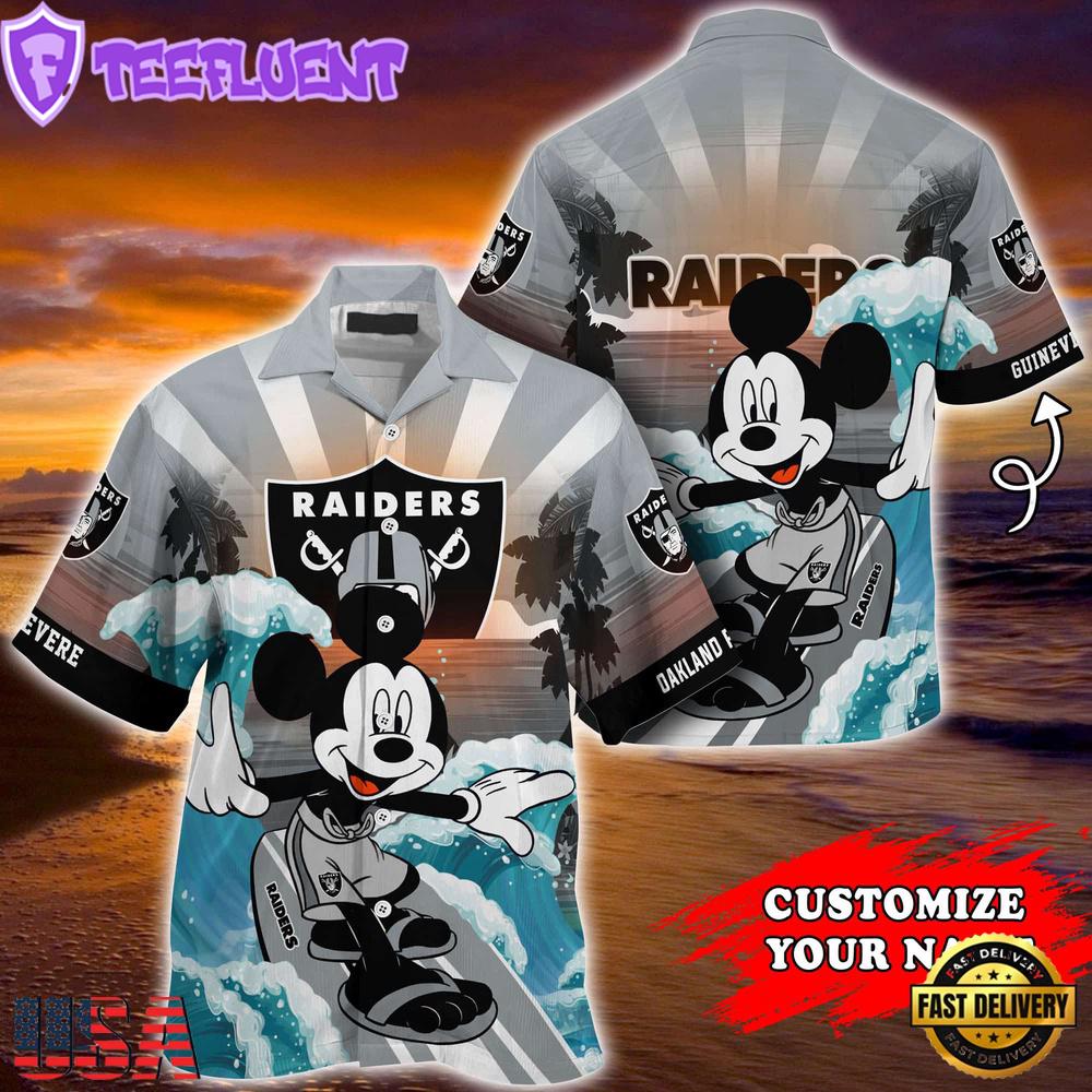 Photos Of NFL Oakland Raiders Mickey Mouse Surfing Custom Name Summer Hawaiian Shirt