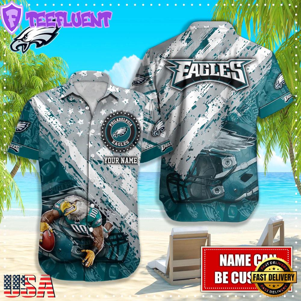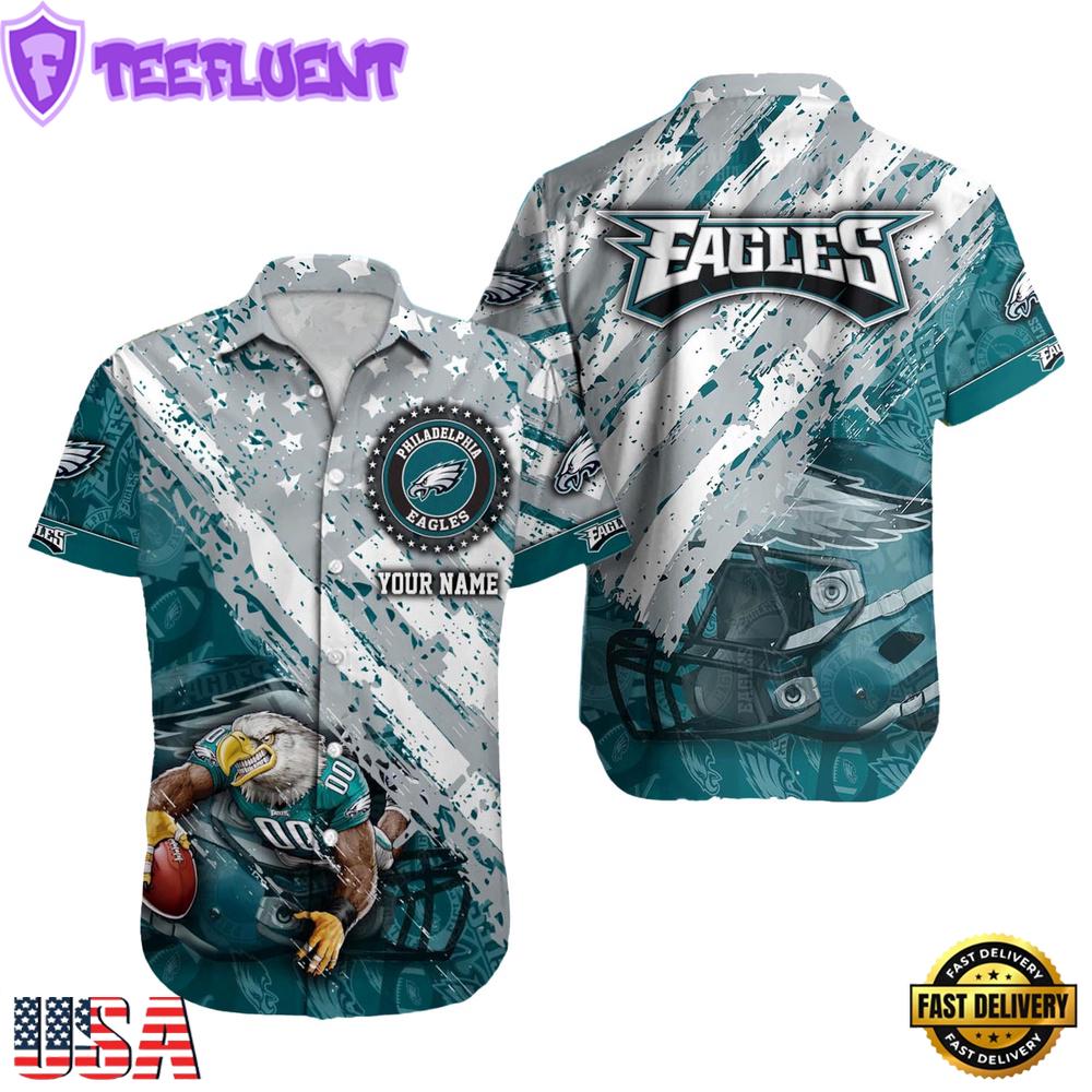 NFL Philadelphia Eagles Football American Flag Mascot Custom Name Summer Hawaiian Shirt