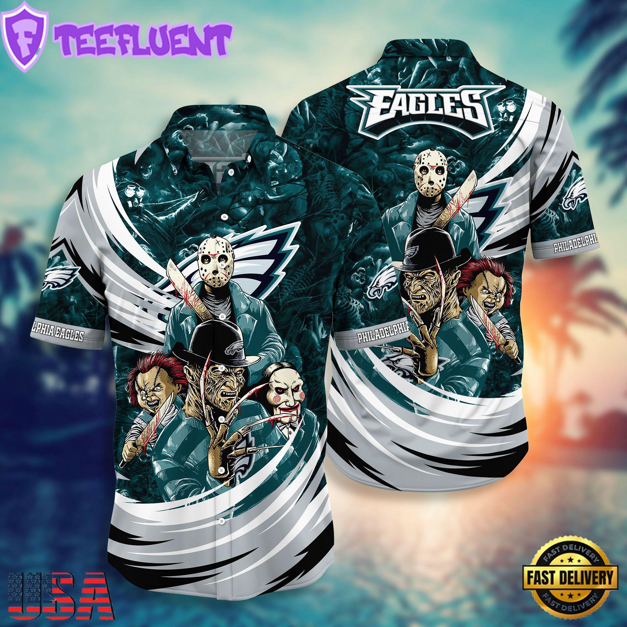 NFL Philadelphia Eagles Halloween Horror Movies Hawaiian Shirt , Aloha Hawaiian Shirts