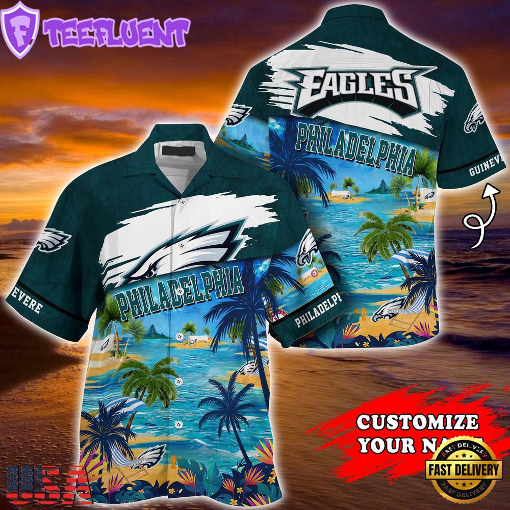 NFL Philadelphia Eagles Hawaii Beach Custom Name Summer Hawaiian Shirt