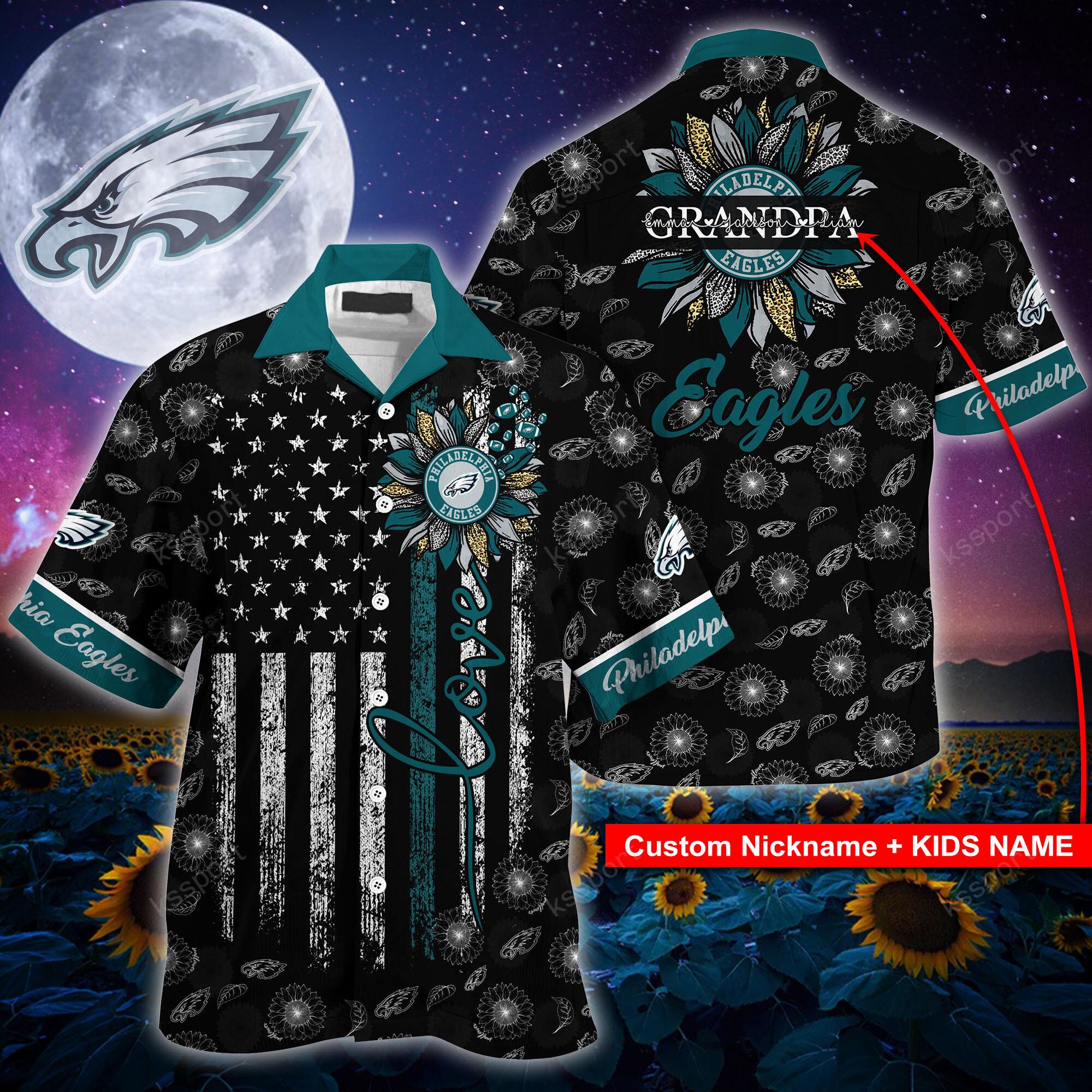 NFL Philadelphia Eagles Sunflower Custom Hawaiian Shirt, Mens Hawaiian Shirts