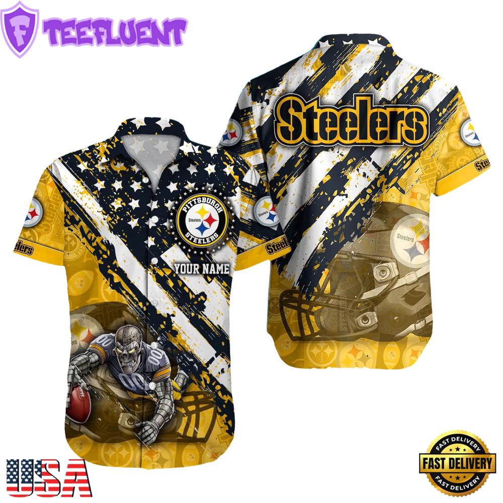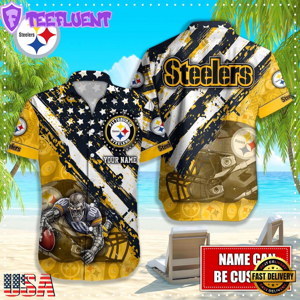NFL Pittsburgh Steelers Football American Flag Mascot Custom Name Summer Hawaiian Shirt