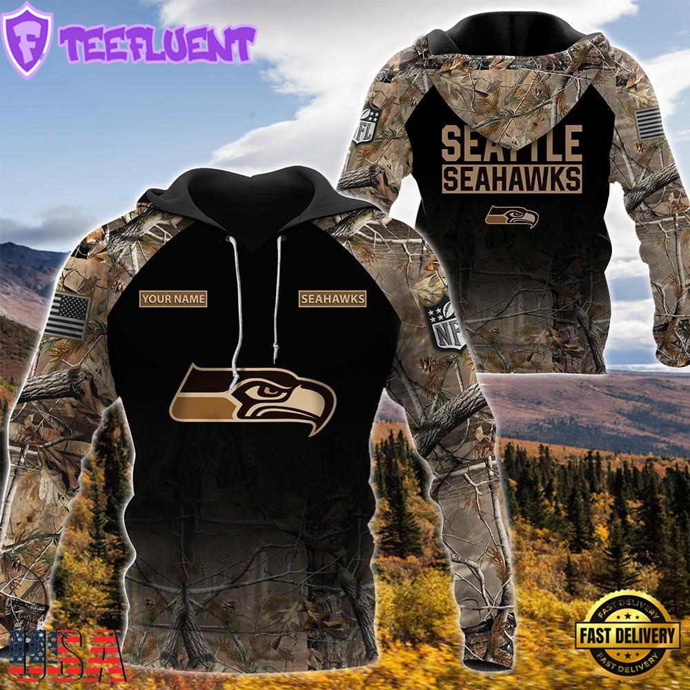 NFL Seattle Seahawks Personalized Your Name Hunting Camo Hoodie , Gift For NFL Fans