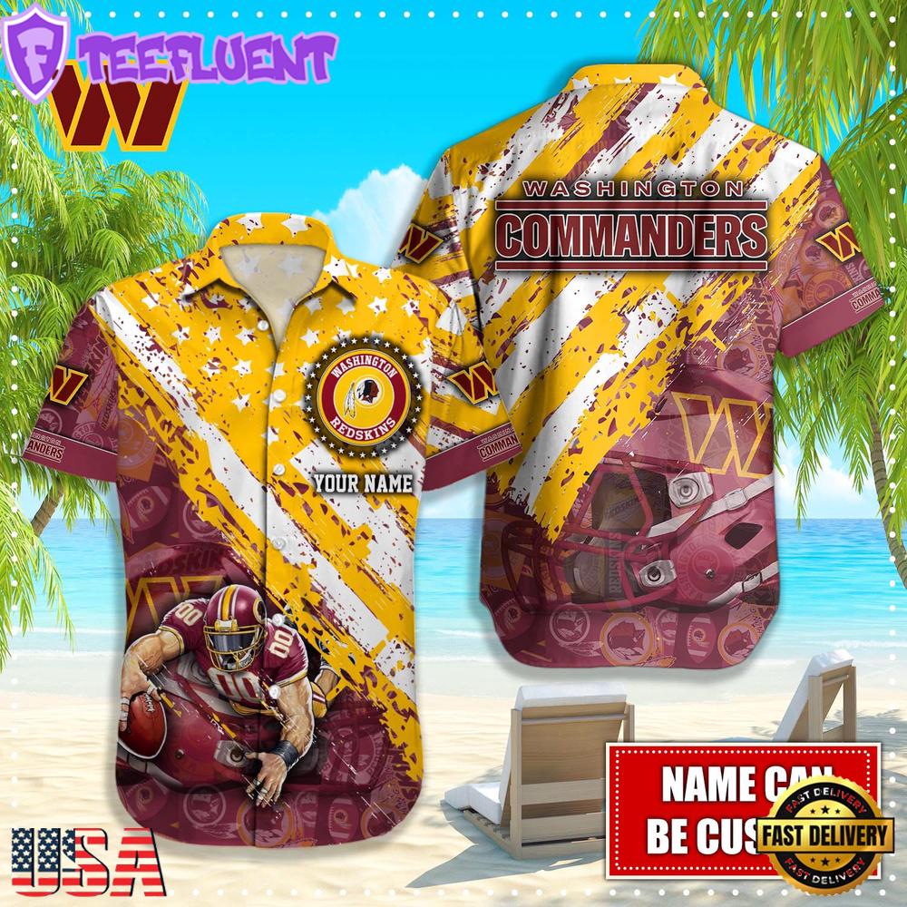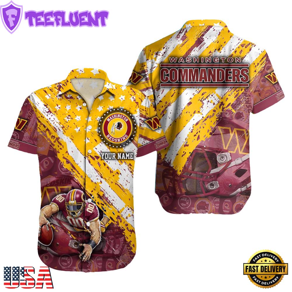 NFL Washington Commanders Football American Flag Mascot Custom Name Summer Hawaiian Shirt