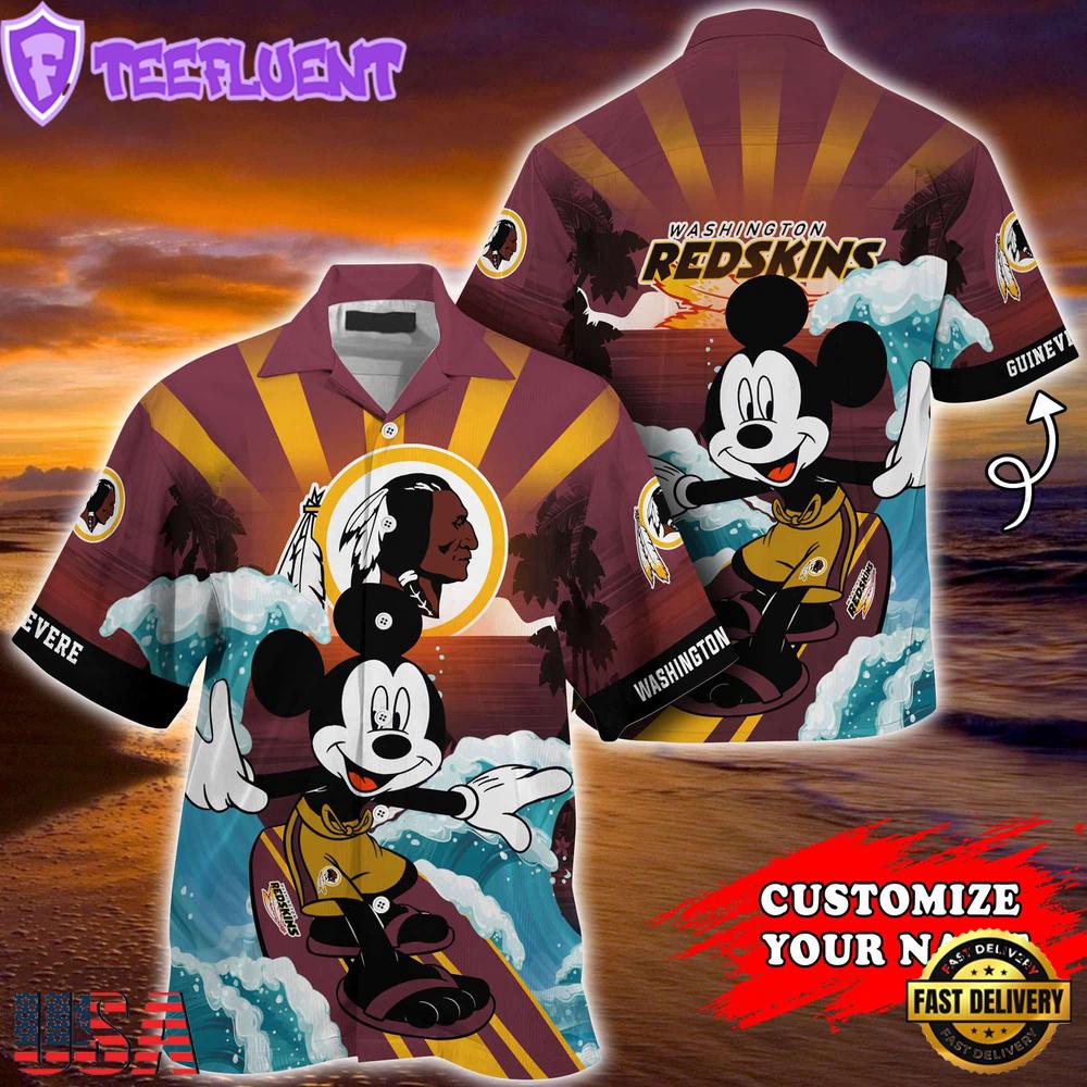 NFL Washington Redskins Mickey Mouse Surfing Custom Name Summer Hawaiian Shirt