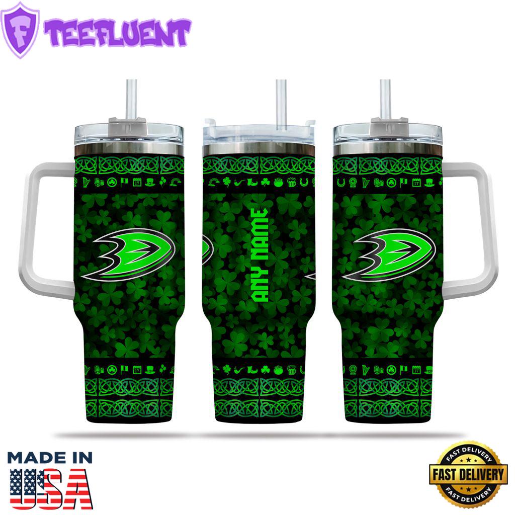 NHL Anaheim Ducks Happy St. Patrick’s Day Custom Stanley Quencher 40oz Stainless Steel Tumbler With Handle
