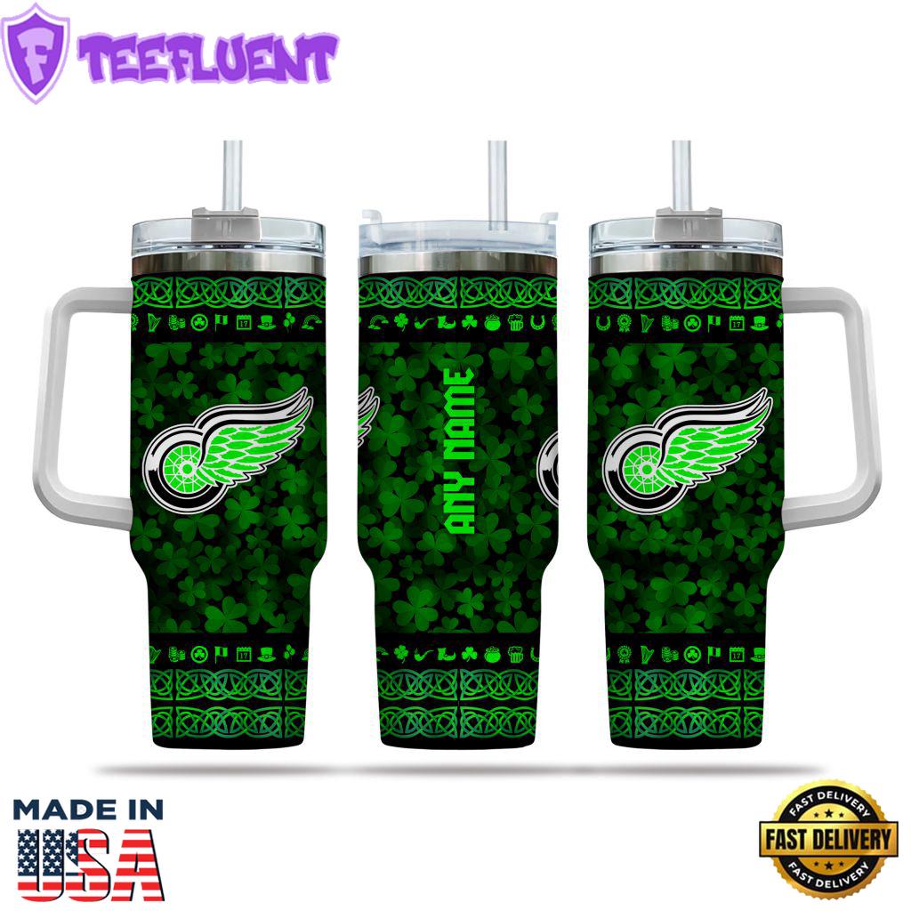 NHL Detroit Red Wings Happy St. Patrick’s Day Custom Stanley Quencher 40oz Stainless Steel Tumbler With Handle