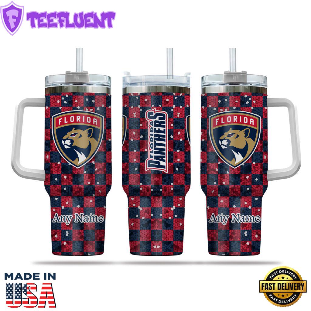 NHL Florida Panthers Stained Glass Effect Custom Stanley Quencher 40oz Stainless Steel Tumbler With Handle