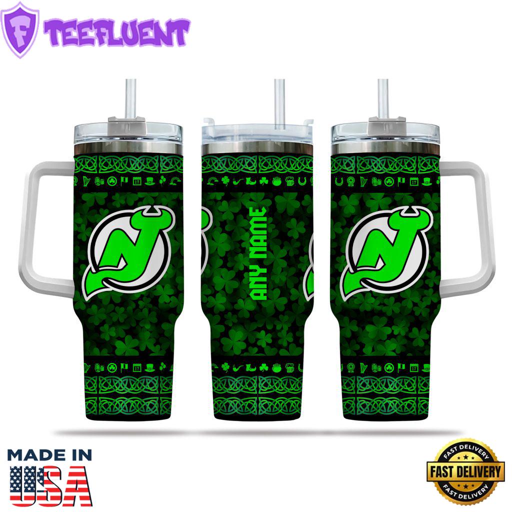 NHL New Jersey Devils Happy St. Patrick’s Day Custom Stanley Quencher 40oz Stainless Steel Tumbler With Handle