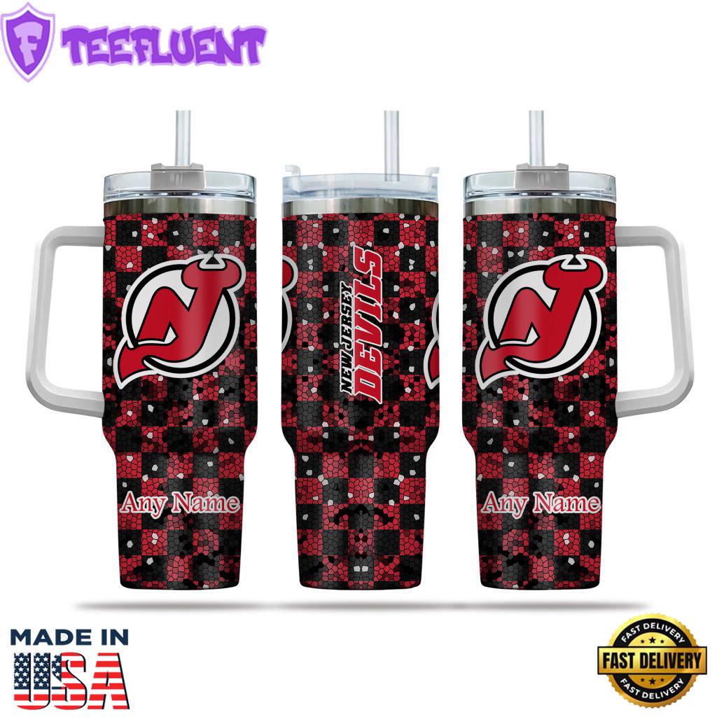 NHL New Jersey Devils Stained Glass Effect Custom Stanley Quencher 40oz Stainless Steel Tumbler With Handle