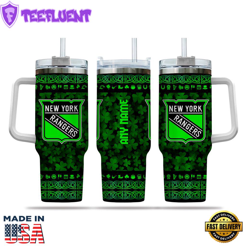 Photos Of NHL New York Rangers Happy St. Patrick’s Day Custom Stanley Quencher 40oz Stainless Steel Tumbler With Handle