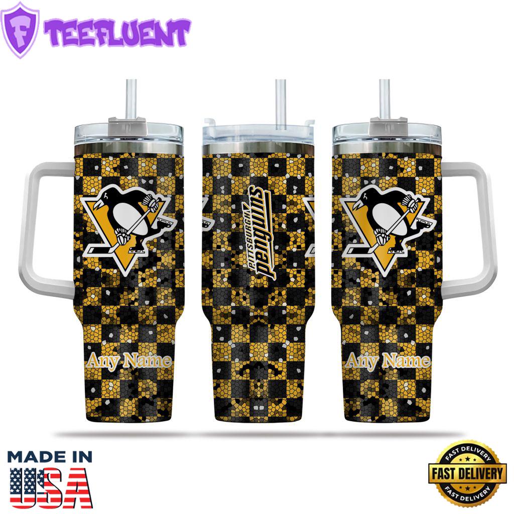 NHL Pittsburgh Penguins Stained Glass Effect Custom Stanley Quencher 40oz Stainless Steel Tumbler With Handle