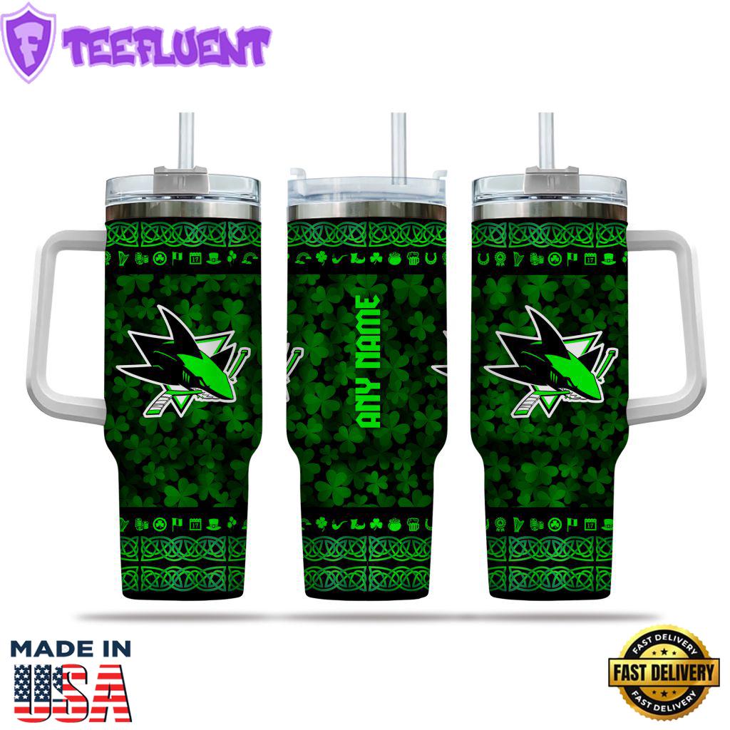Photos Of NHL San Jose Sharks Happy St. Patrick’s Day Custom Stanley Quencher 40oz Stainless Steel Tumbler With Handle