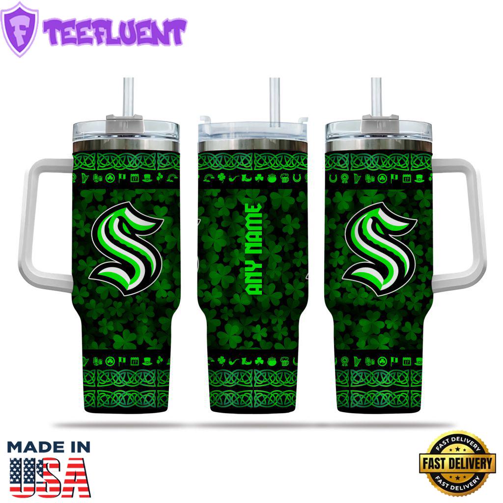Photos Of NHL Seattle Kraken Happy St. Patrick’s Day Custom Stanley Quencher 40oz Stainless Steel Tumbler With Handle