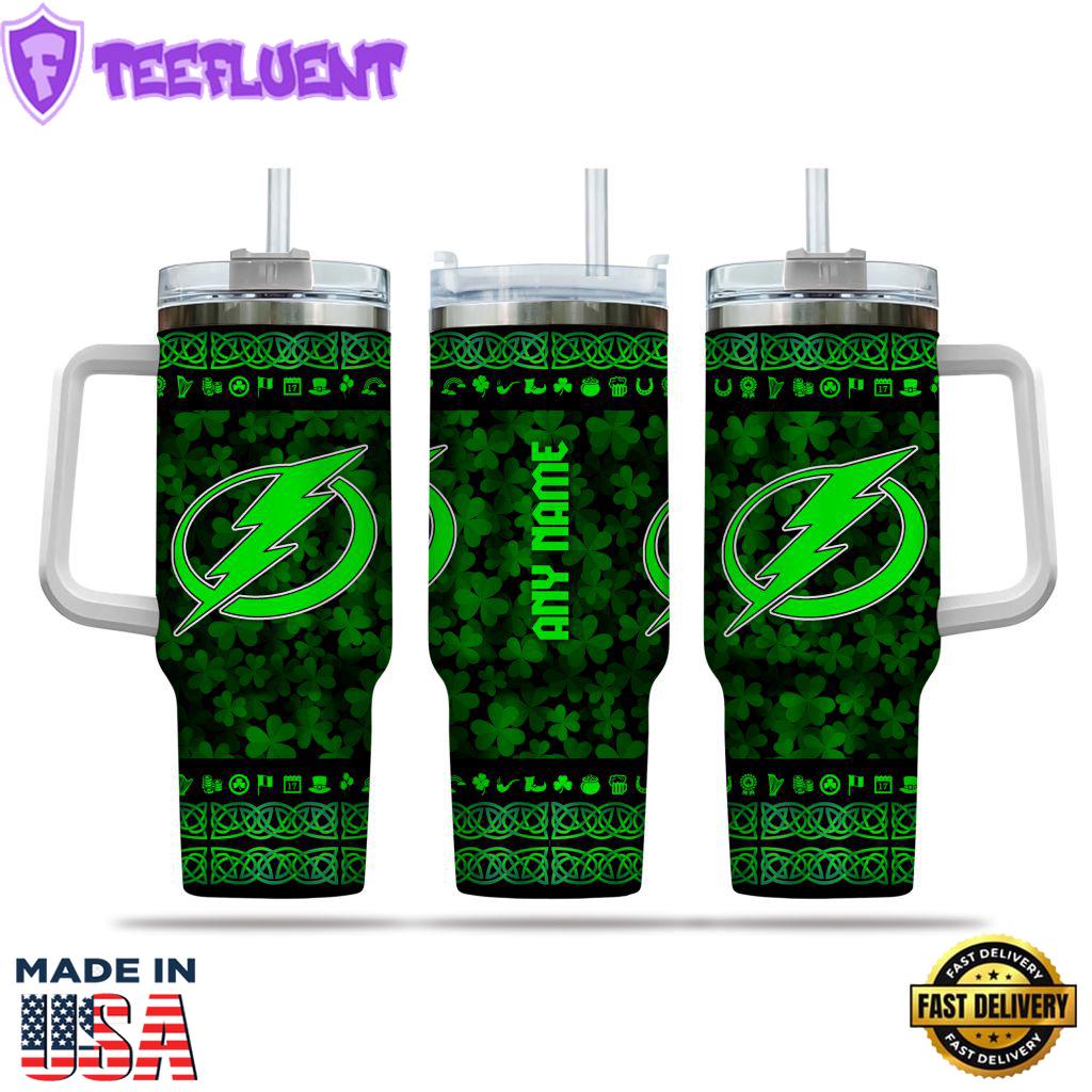 Photos Of NHL Tampa Bay Lightning Happy St. Patrick’s Day Custom Stanley Quencher 40oz Stainless Steel Tumbler With Handle