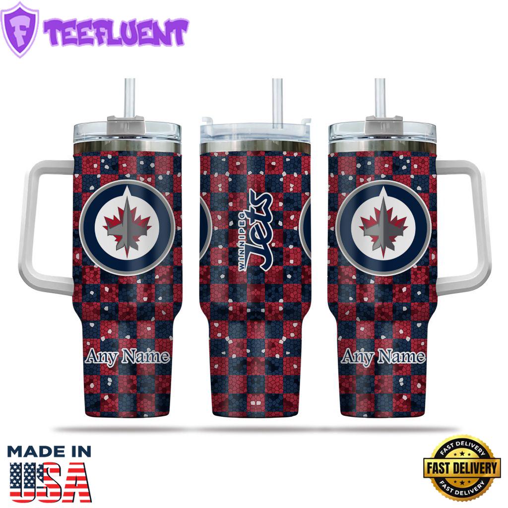 Photos Of NHL Winnipeg Jets Stained Glass Effect Custom Stanley Quencher 40oz Stainless Steel Tumbler With Handle