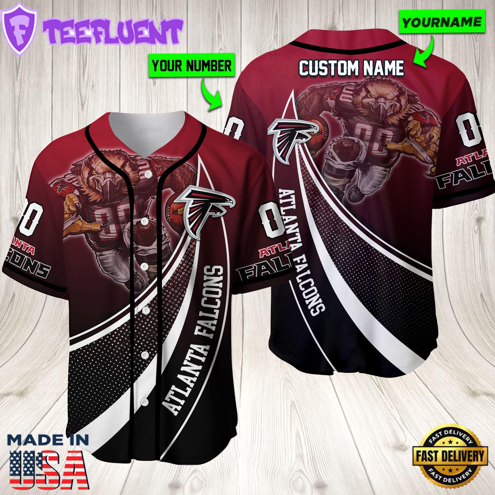 Personalized Atlanta Falcons 3D Baseball Jersey Nfl Baseball Jersey Mascot Shirt For Fans