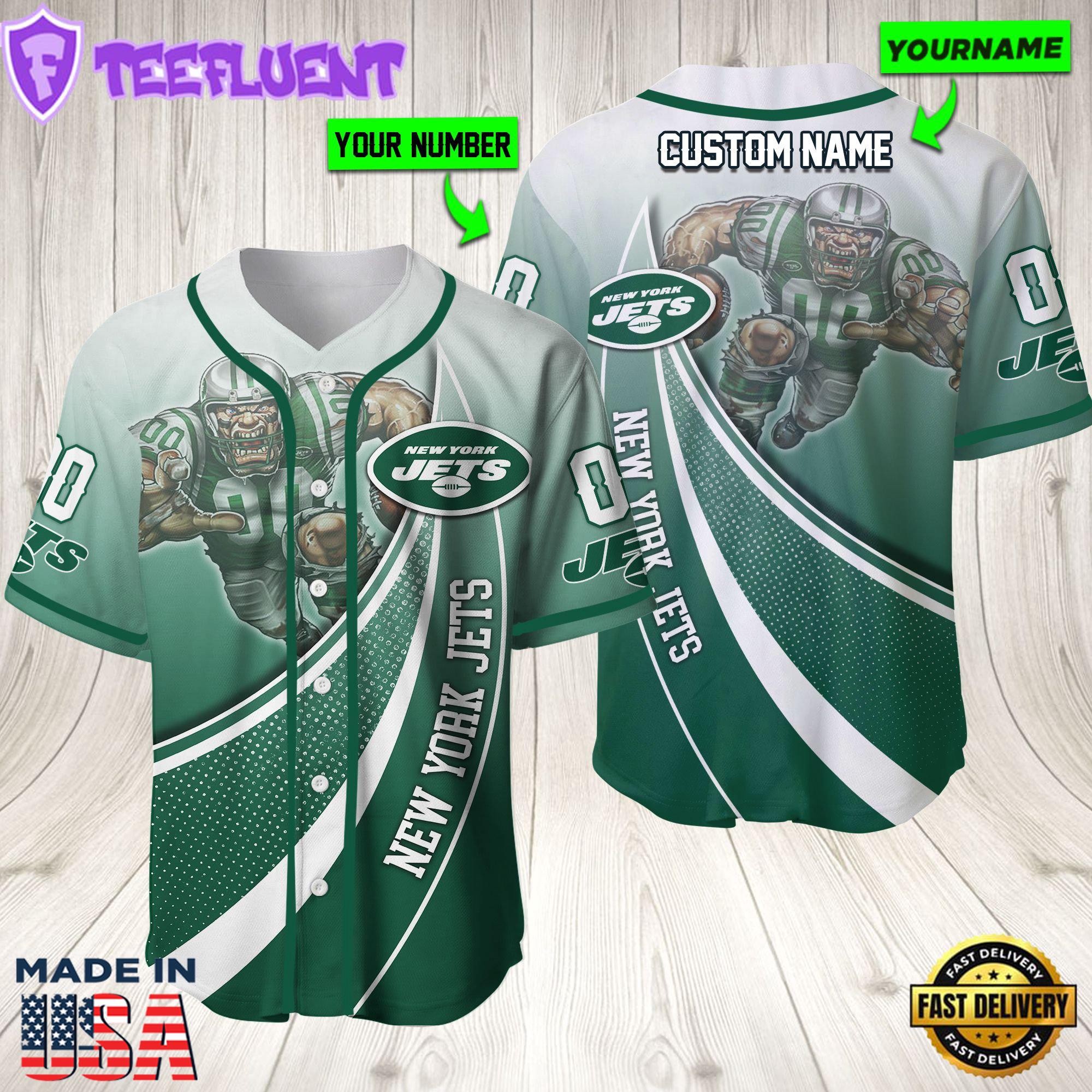 Personalized New York Jets 3D Baseball Jersey Nfl Baseball Jersey Mascot Shirt For Fans Gift Summer