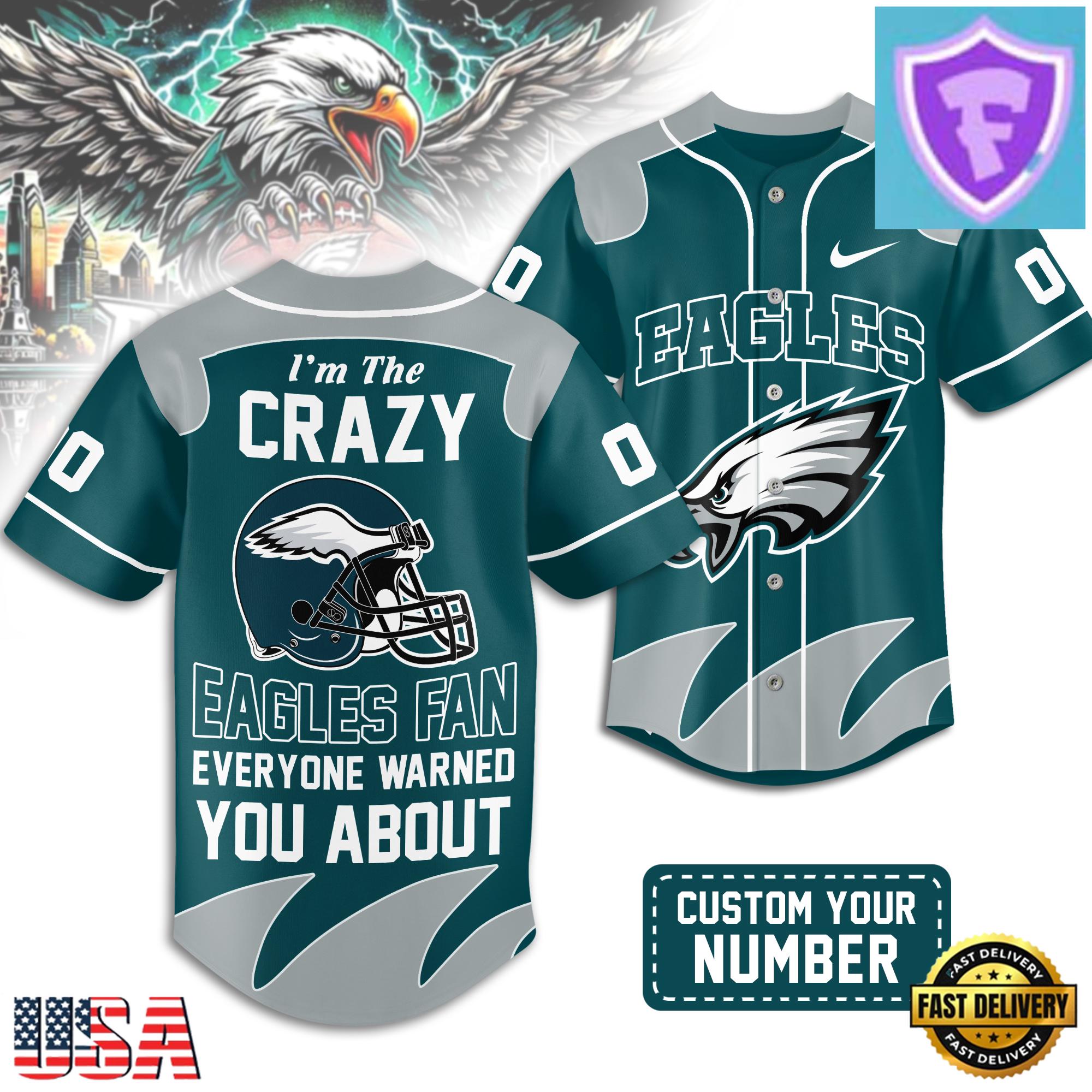 Philadelphia Eagles NFL Crazy Football Custom Baseball Jersey Shirt