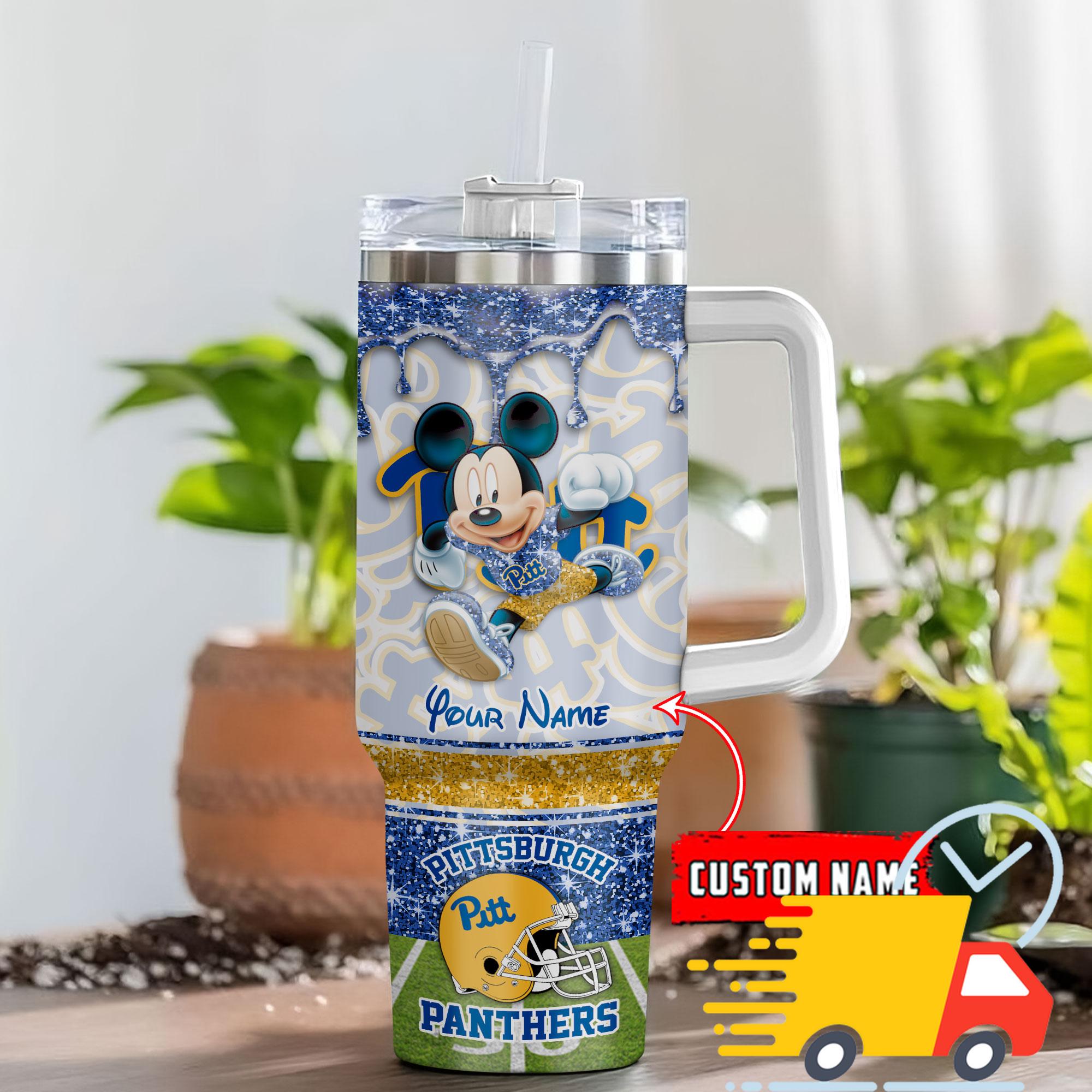 Pittsburgh Panthers NCAA Mickey Mouse Glitter Custom Stanley Quencher 40oz Stainless Steel Tumbler With Handle For Fans