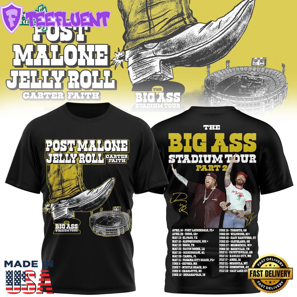 - Post Malone & Jelly Roll The Big Ass Stadium Tour Part 2 2026 Concert T-Shirt For Man And Women