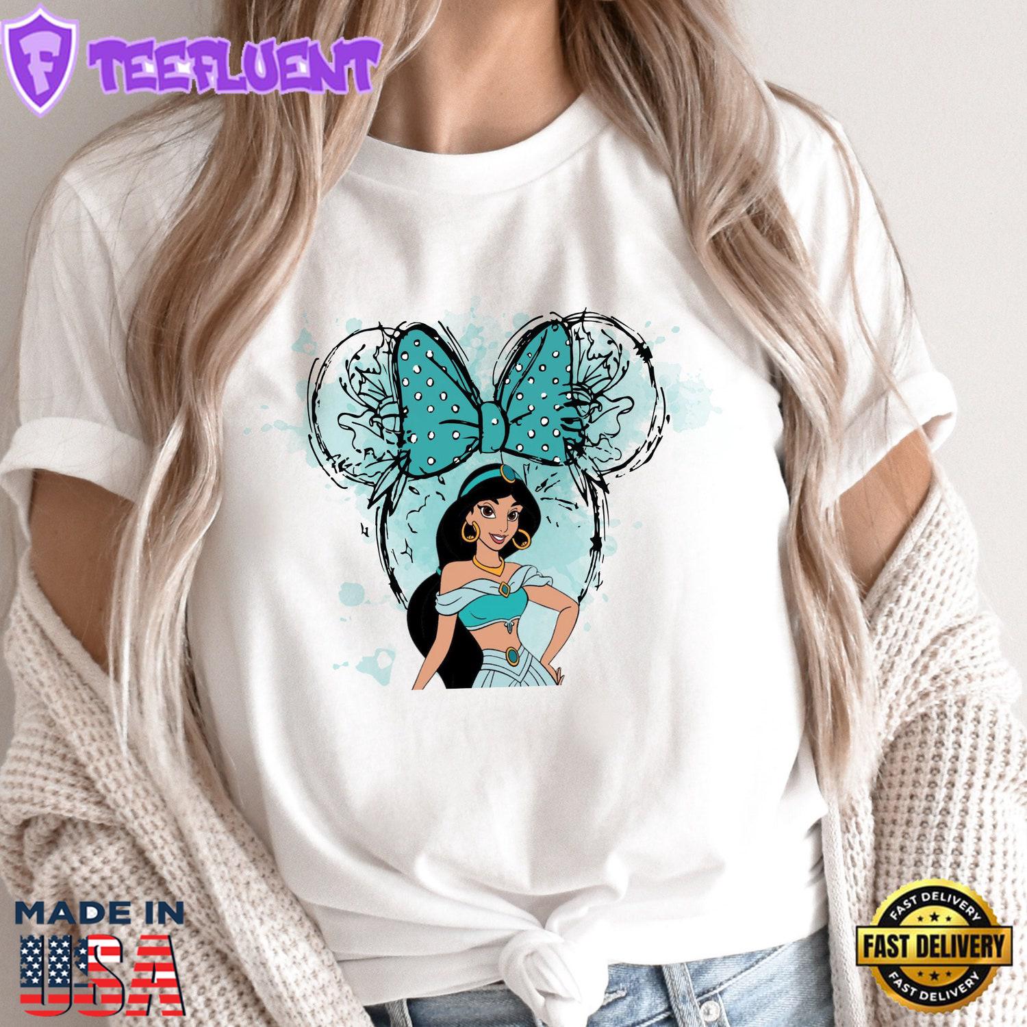 Princess Jasmine Watercolor T-Shirt Disney Princess Character Tee Girl’s Minnie Ears Shirt Gift Summer