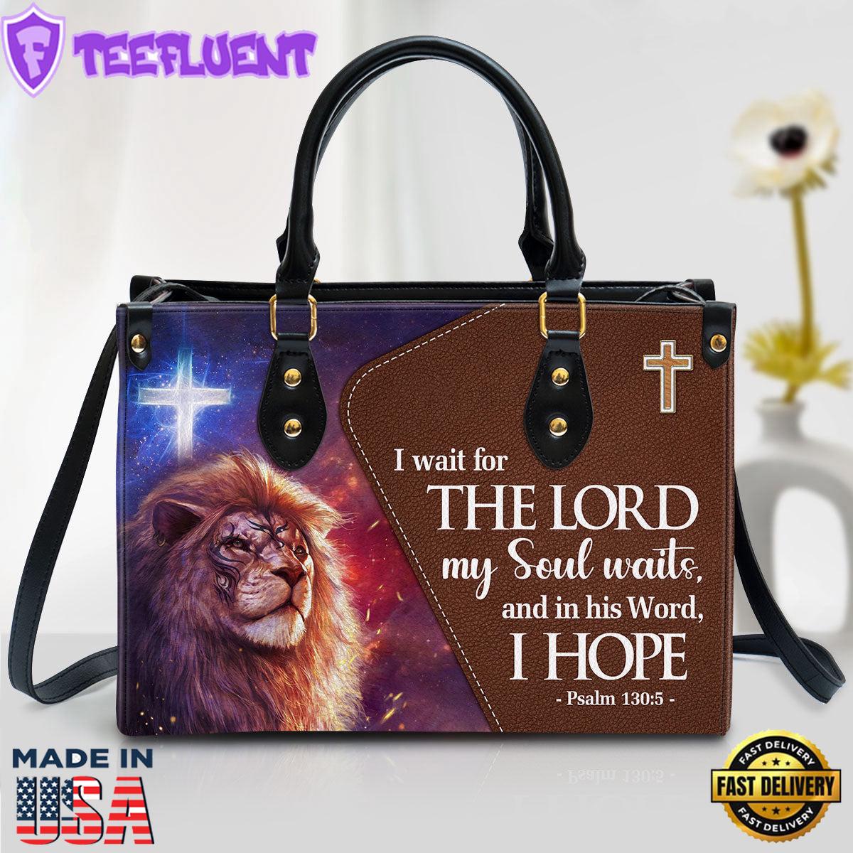 Product Details Psalm 1305 I Wait For The Lord Leather Handbag With Handle Christ Gifts Leather Bags